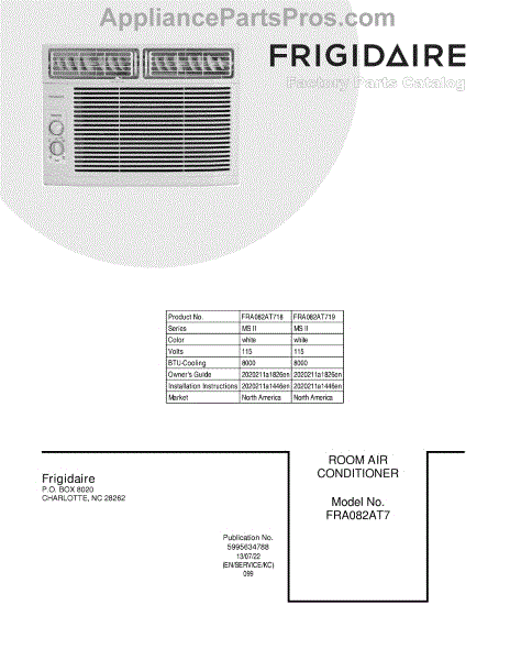 Parts for Frigidaire FRA082AT719: 01 - Cover Parts