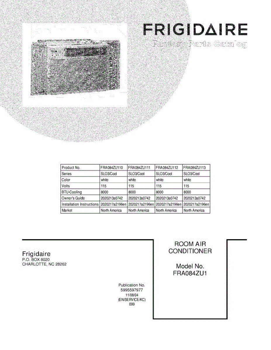 Parts for Frigidaire FRA084ZU112: 01 - Cover Parts