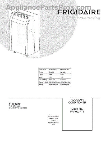 Parts for Frigidaire FRA093PT11: 01 - Cover Parts