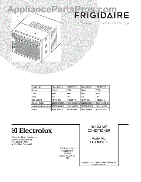 Parts for Frigidaire FRA102BT11: 01 - Cover Parts
