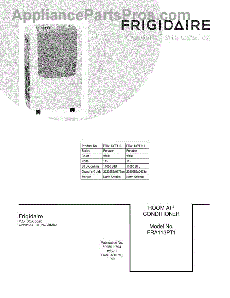 Parts for Frigidaire FRA113PT110: 01 - Cover Parts