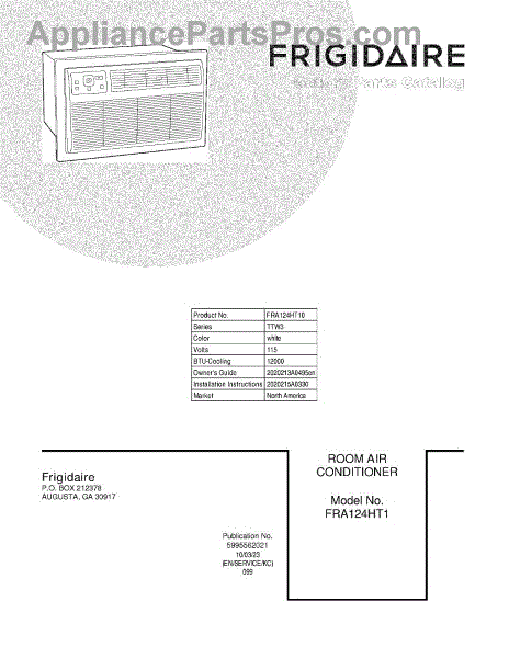 Parts for Frigidaire FRA124HT10: 01 - Cover Parts