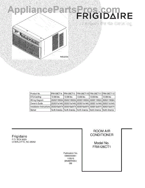 Parts for Frigidaire FRA126CT111: 01 - Cover Parts