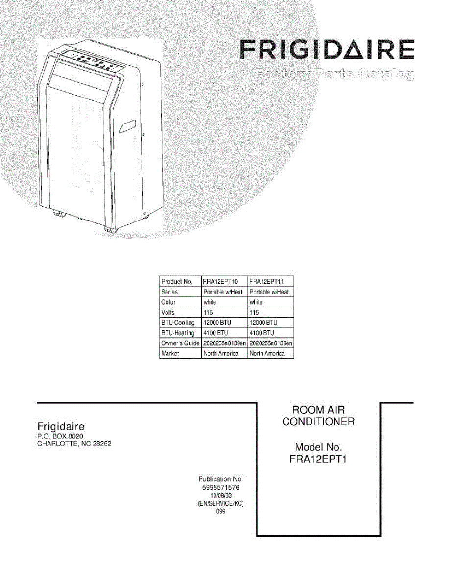 Parts for Frigidaire FRA12EPT10: 01 - Cover Parts