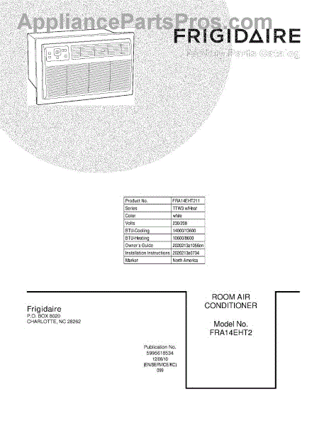 Parts for Frigidaire FRA14EHT211: 01 - Cover Parts