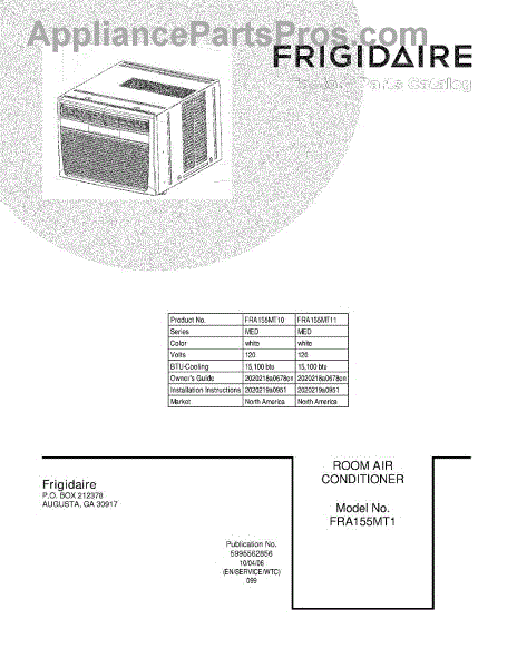 Parts for Frigidaire FRA155MT11: 01 - Cover Parts