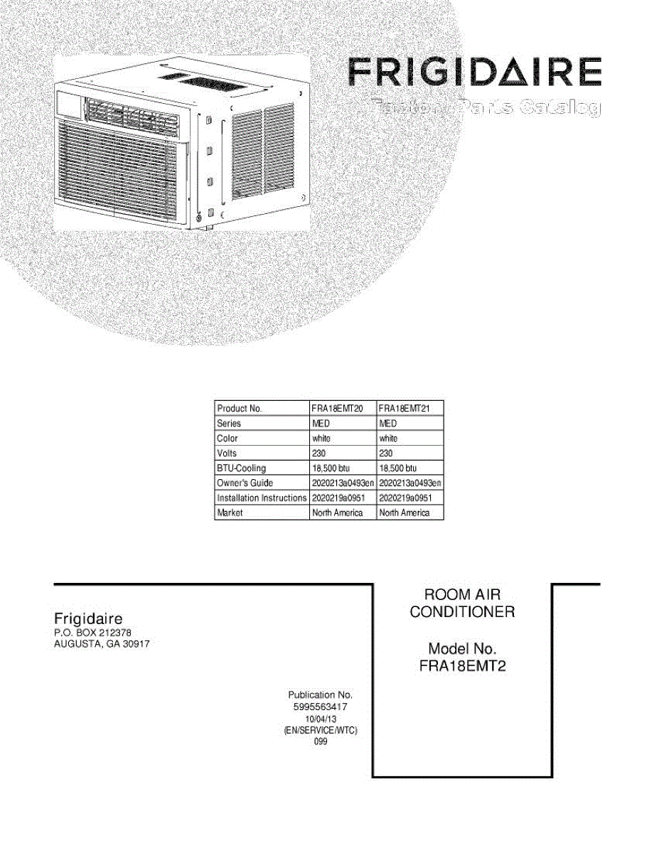 Parts for Frigidaire FRA18EMT20: 01 - Cover Parts