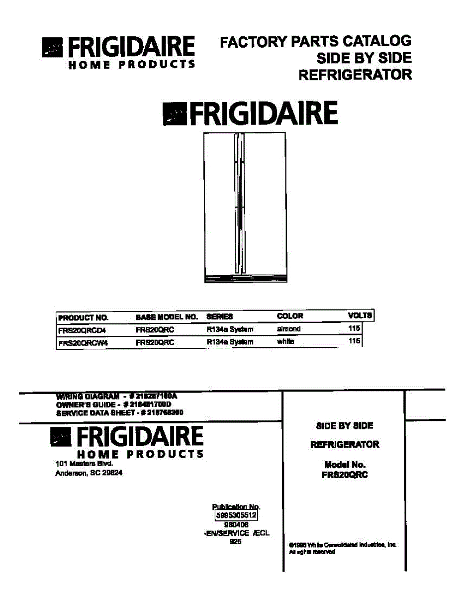 Parts for Frigidaire FRS20QRCW4: 01 - Cover Parts