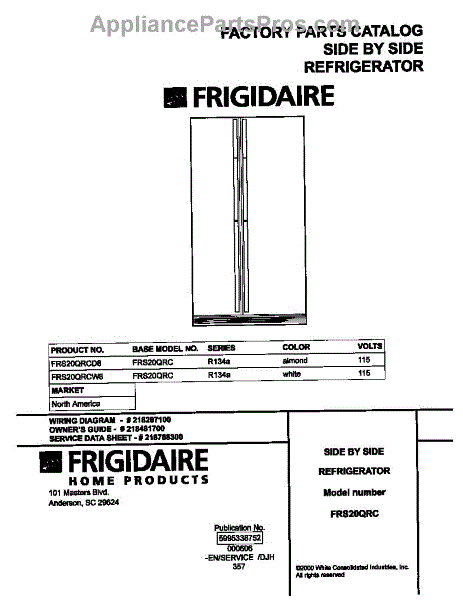 Parts for Frigidaire FRS20QRCW8: 01 - Cover Parts