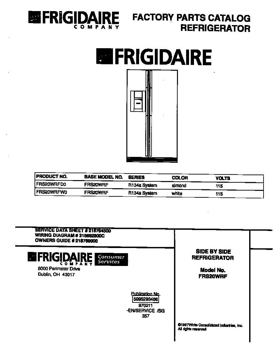 Parts for Frigidaire FRS20WRFW0: 01 - Cover Parts