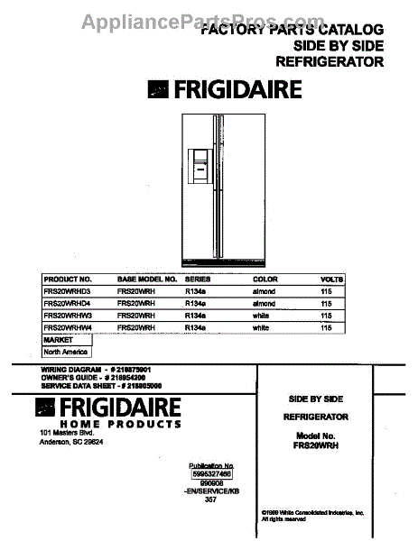 Parts for Frigidaire FRS20WRHD3: 01 - Cover Parts