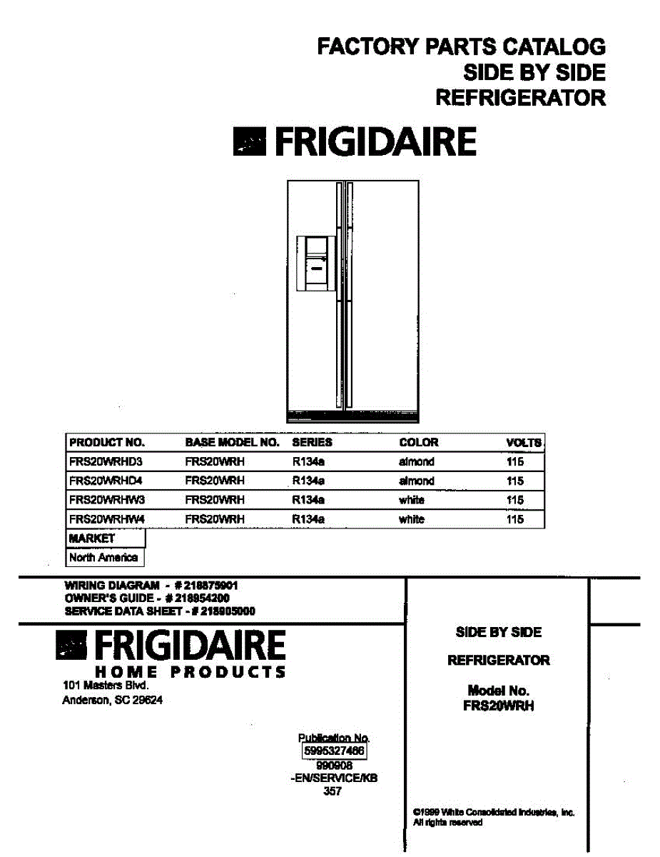 Parts for Frigidaire FRS20WRHD4: 01 - Cover Parts