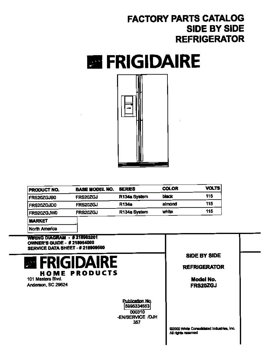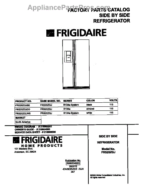 Parts for Frigidaire FRS20ZGJD0: 01 - Cover Parts