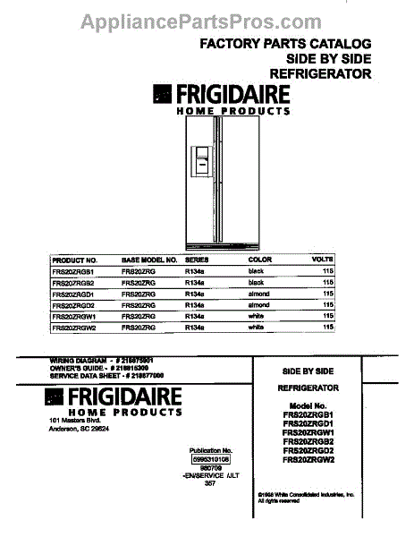 Parts for Frigidaire FRS20ZRGW2: 01 - Cover Parts