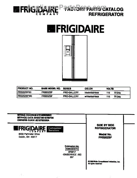 Parts for Frigidaire FRS20ZSFB0: 01 - Cover Parts