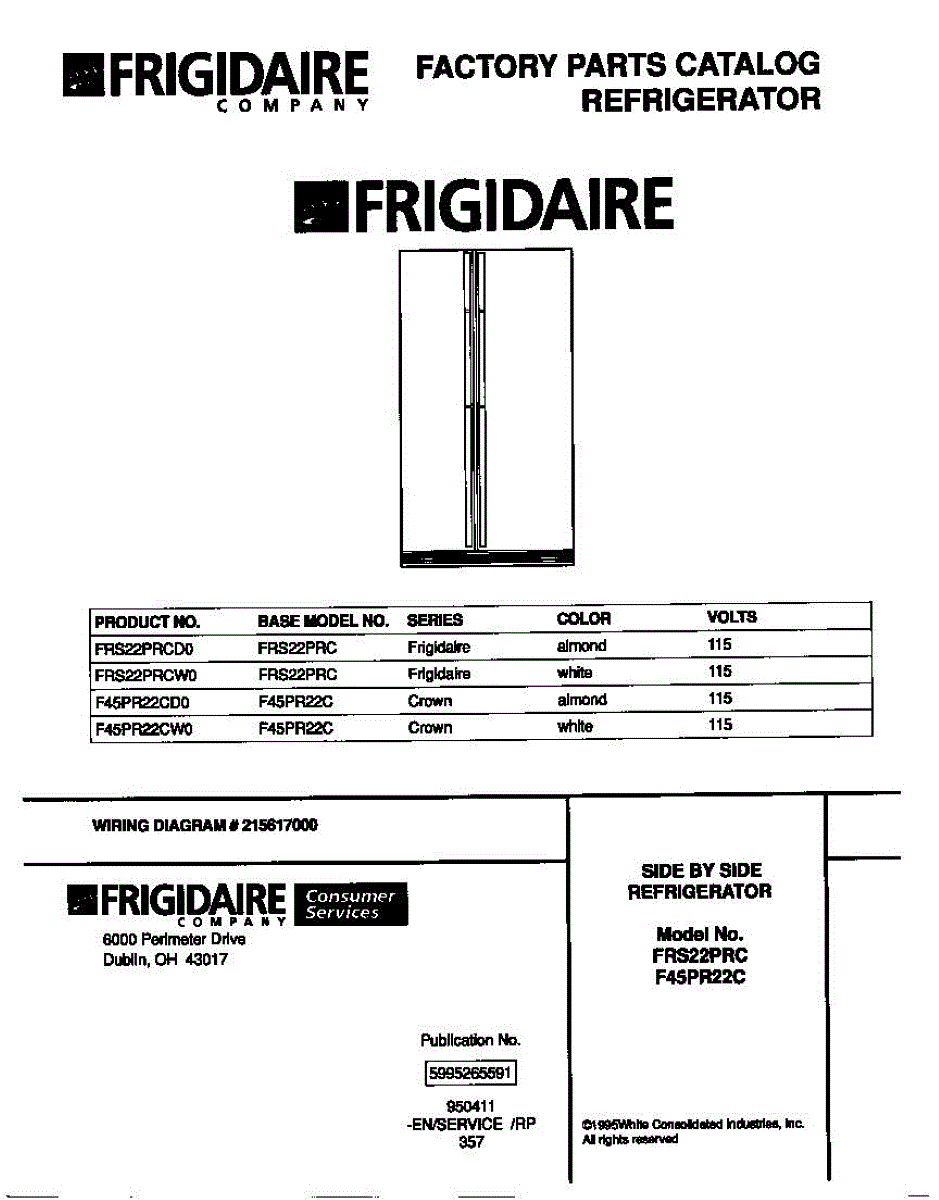 Parts for Frigidaire FRS22PRCD0: 01 - Cover Parts