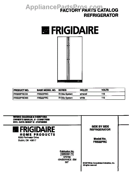 Parts for Frigidaire FRS22PRCD3: 01 - Cover Parts