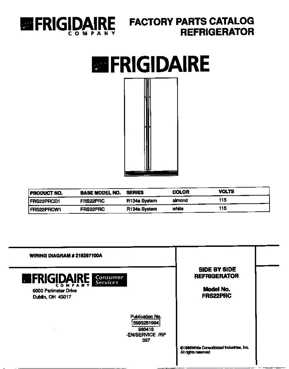 Parts for Frigidaire FRS22PRCW1: 01 - Cover Parts