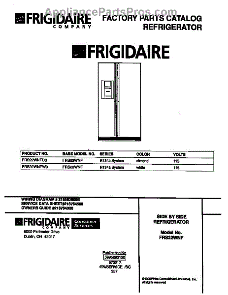 Parts for Frigidaire FRS22WNFD0: 01 - Cover Parts