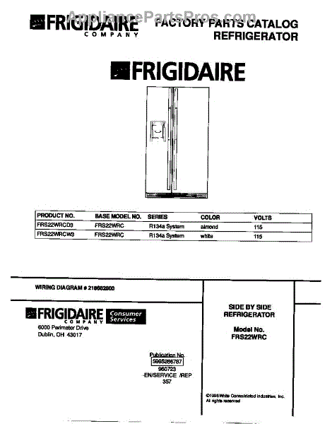 Parts for Frigidaire FRS22WRCD3: 01 - Cover Parts
