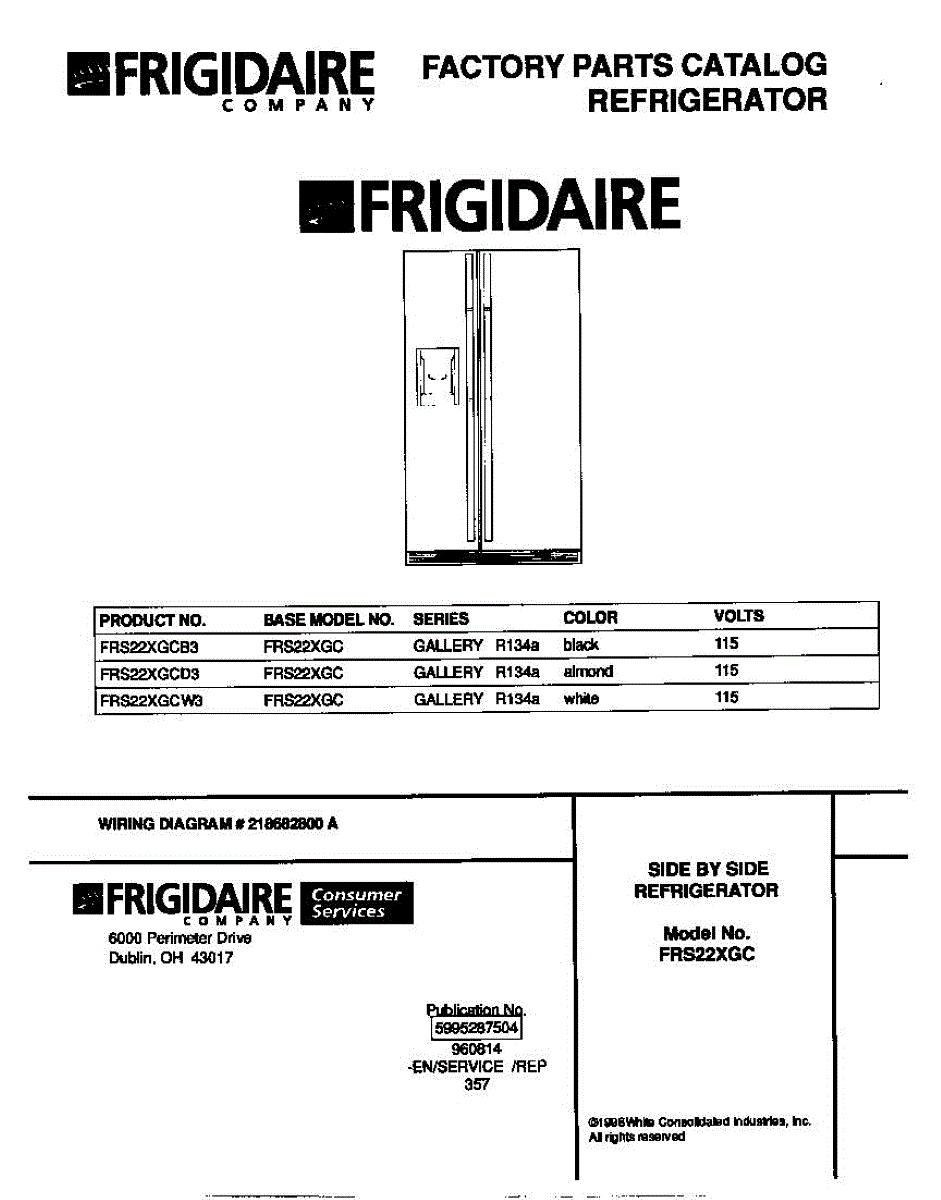 Parts for Frigidaire FRS22XGCB3: 01 - Cover Parts