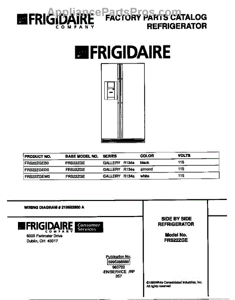 Parts for Frigidaire FRS22ZGED0: 01 - Cover Parts