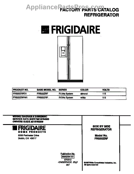 Parts for Frigidaire FRS22ZRFD1: 01 - Cover Parts
