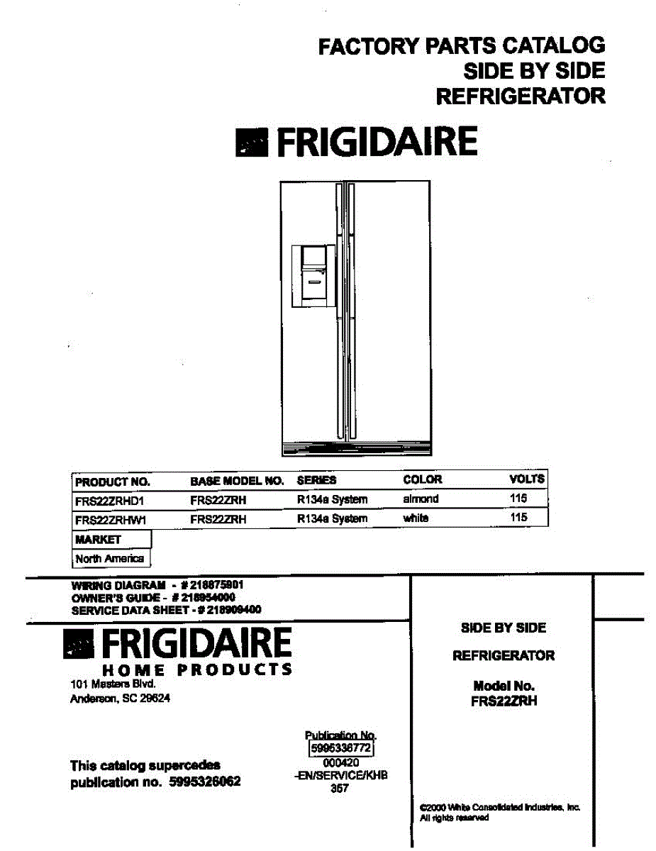 Parts for Frigidaire FRS22ZRHD1: 01 - Cover Parts