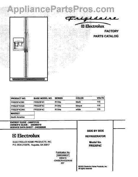 Parts for Frigidaire FRS23F4CW0: 01 - Cover Parts