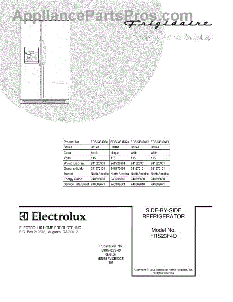 Parts for Frigidaire FRS23F4DW4: 01 - Cover Parts