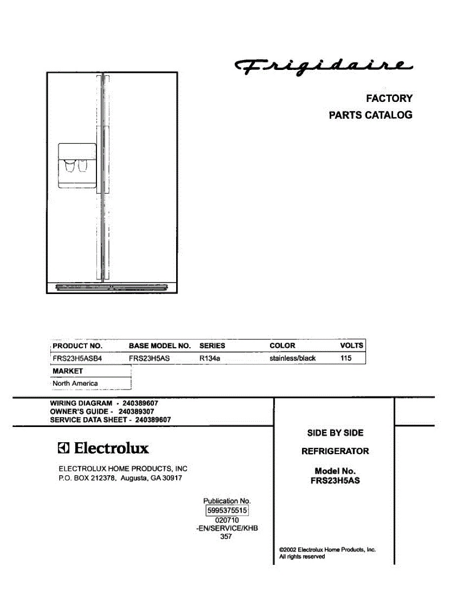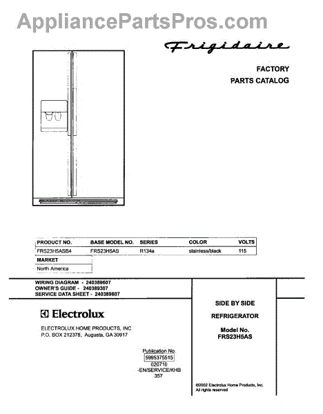 Parts for Frigidaire FRS23H5ASB4: 01 - Cover Parts