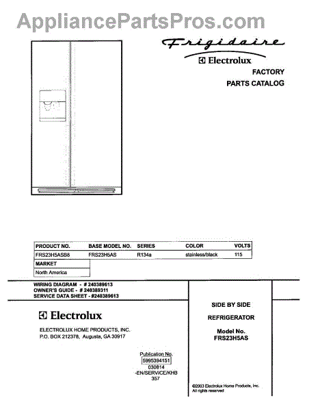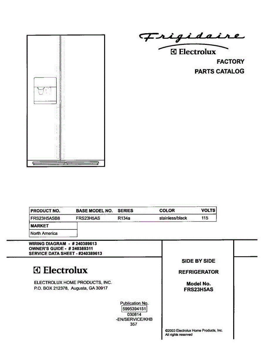 Parts for Frigidaire FRS23H5ASB8: 01 - Cover Parts