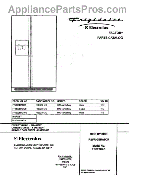 Parts for Frigidaire FRS23H7CQ0: 01 - Cover Parts
