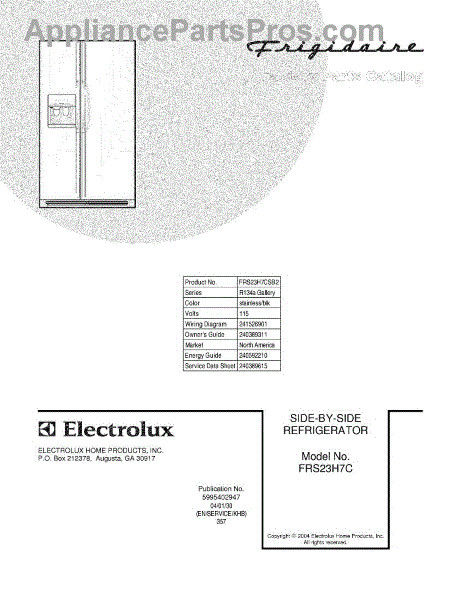 Parts for Frigidaire FRS23H7CSB2: 01 - Cover Parts
