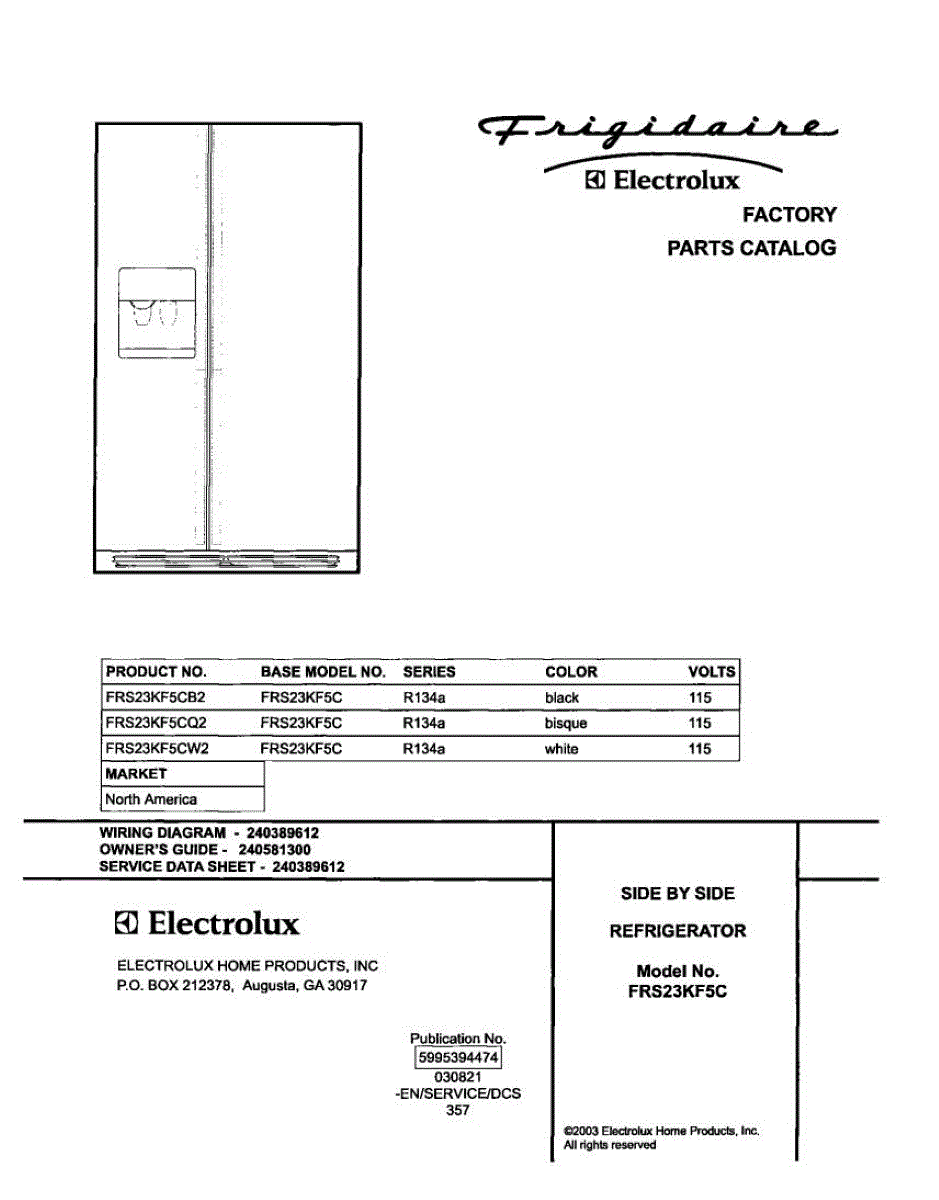 Parts for Frigidaire FRS23KF5CB2: 01 - Cover Parts