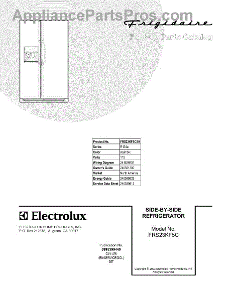 Parts for Frigidaire FRS23KF5CS0: 01 - Cover Parts
