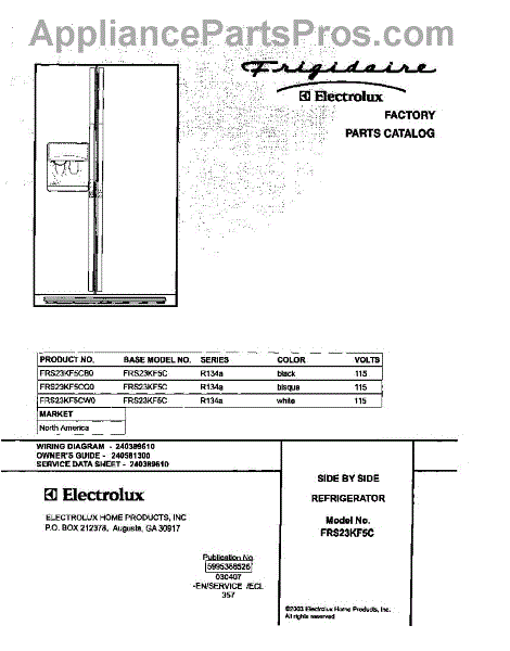 Parts for Frigidaire FRS23KF5CW0: 01 - Cover Parts