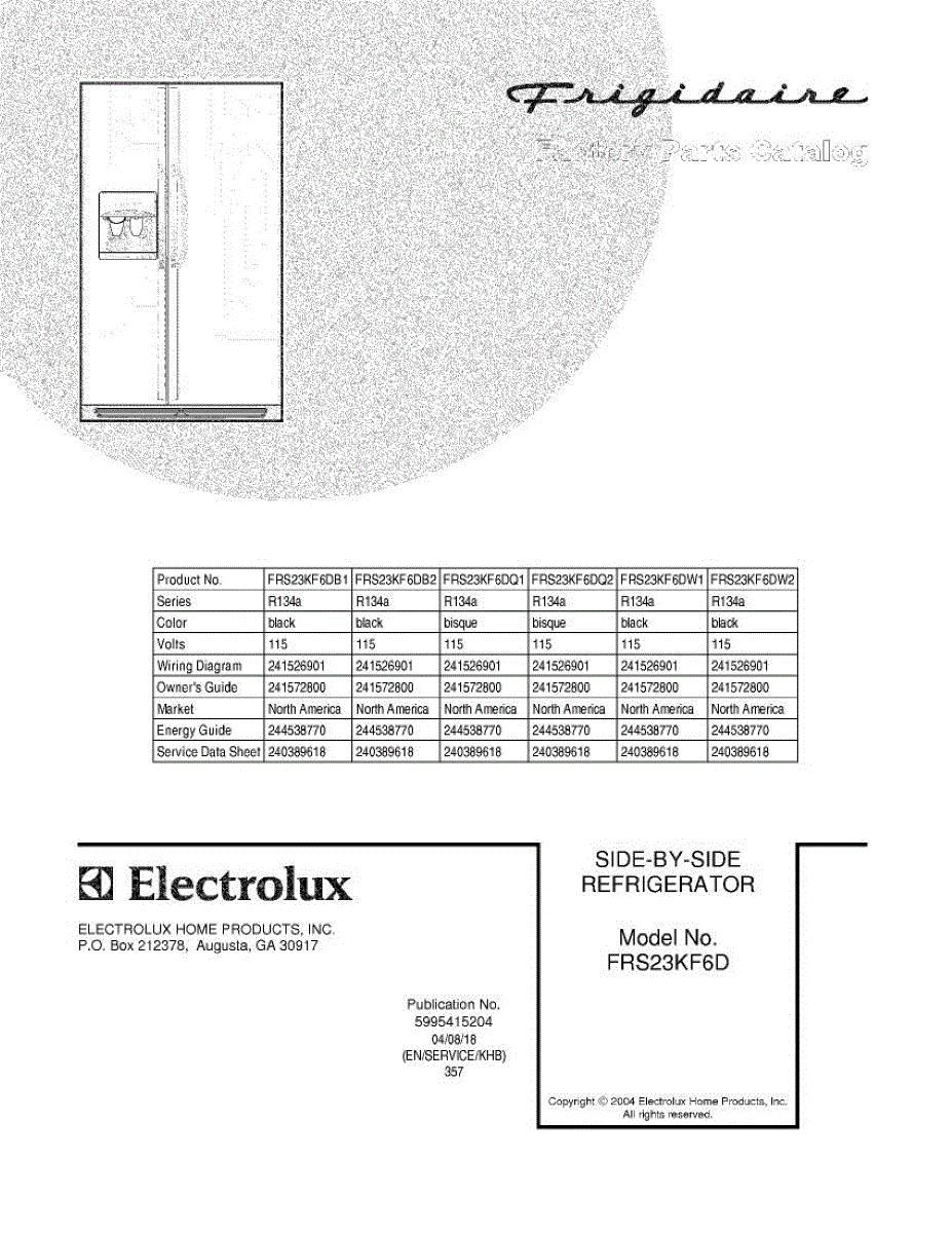 Parts for Frigidaire FRS23KF6DQ2: 01 - Cover Parts