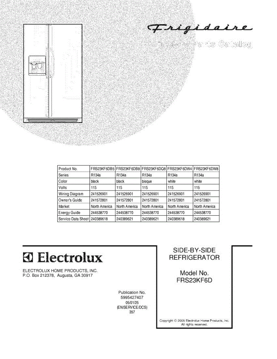 Parts for Frigidaire FRS23KF6DW4: 01 - Cover Parts