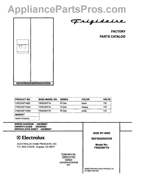 Parts for Frigidaire FRS23KF7AQ5: 01 - Cover Parts