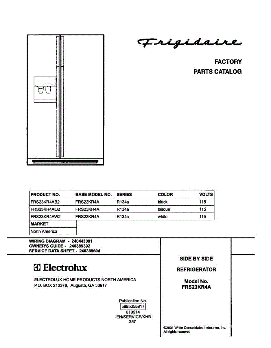 Parts for Frigidaire FRS23KR4AB2: 01 - Cover Parts