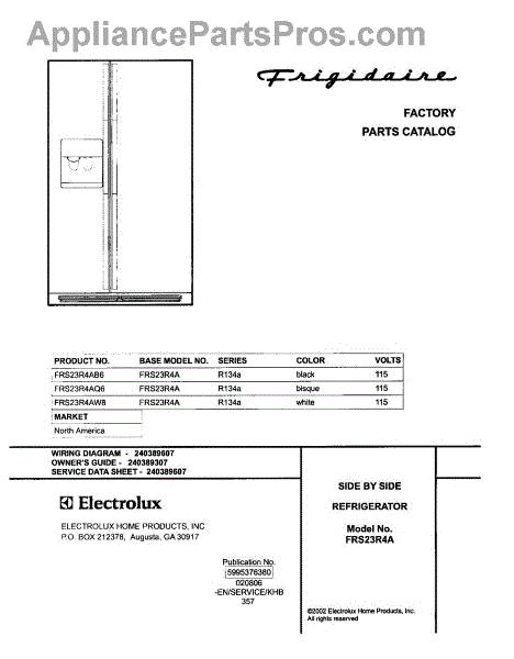 Parts for Frigidaire FRS23R4AB6: 01 - Cover Parts