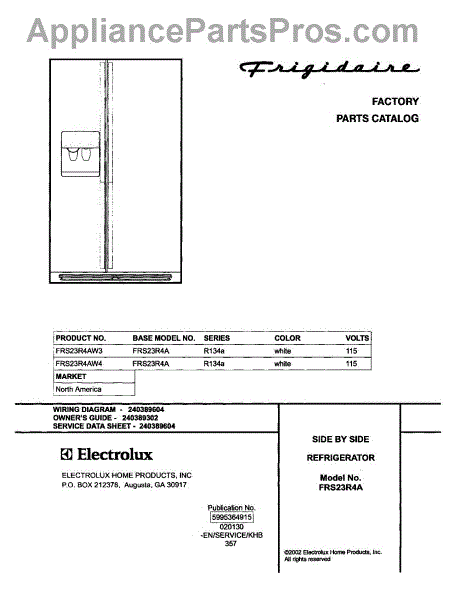 Parts for Frigidaire FRS23R4AW3: 01 - Cover Parts