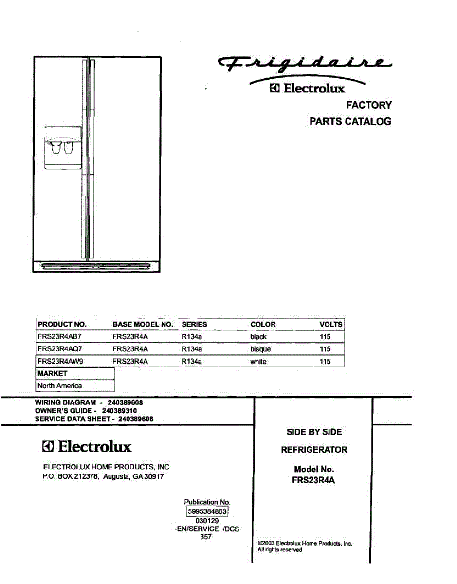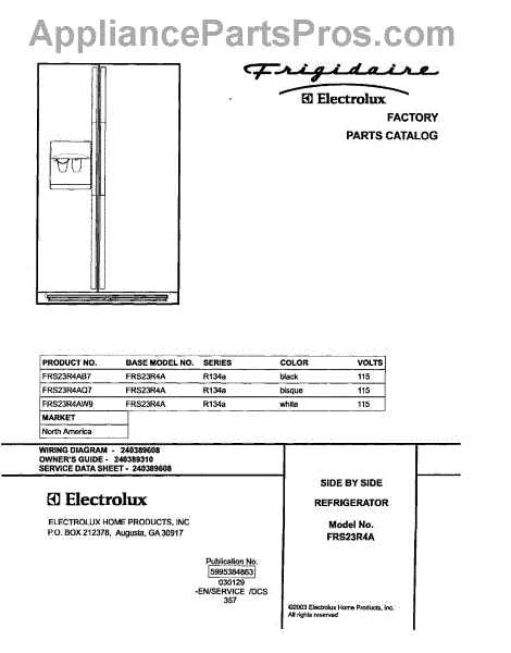Parts for Frigidaire FRS23R4AW9: 01 - Cover Parts
