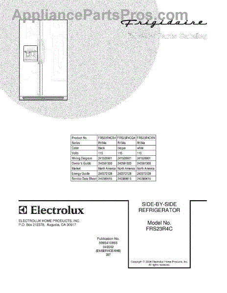Parts for Frigidaire FRS23R4CQ4: 01 - Cover Parts