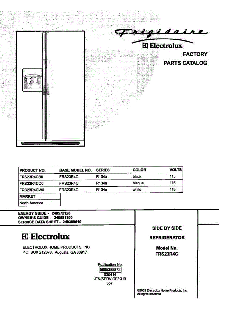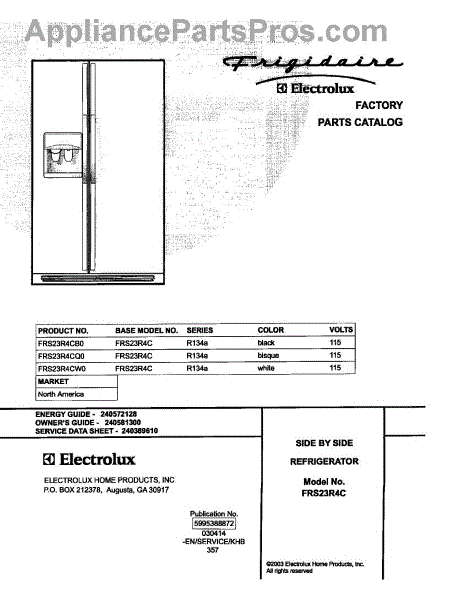 Parts for Frigidaire FRS23R4CW0: 01 - Cover Parts