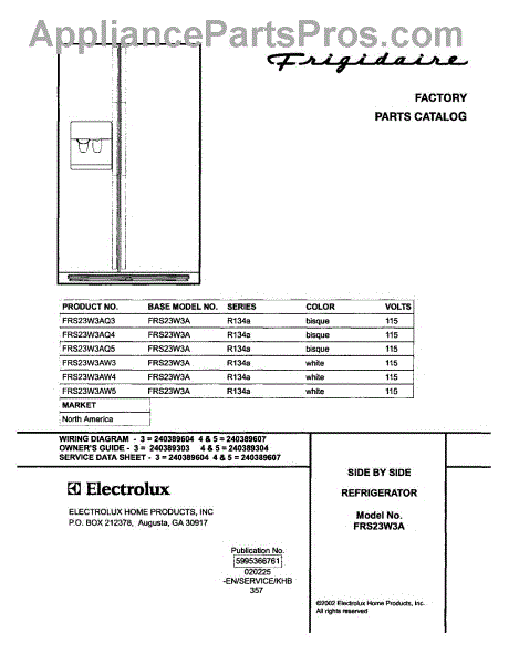Parts for Frigidaire FRS23W3AQ3: 01 - Cover Parts