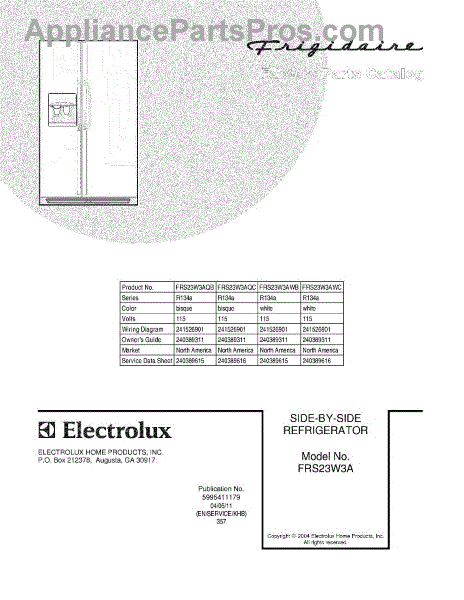 Parts for Frigidaire FRS23W3AQC: 01 - Cover Parts