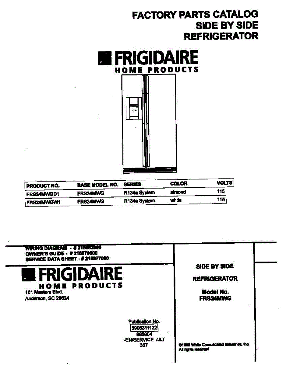 Parts for Frigidaire FRS24MWGW1: 01 - Cover Parts