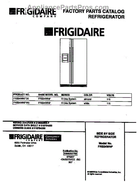 Parts for Frigidaire FRS24WNFW0: 01 - Cover Parts